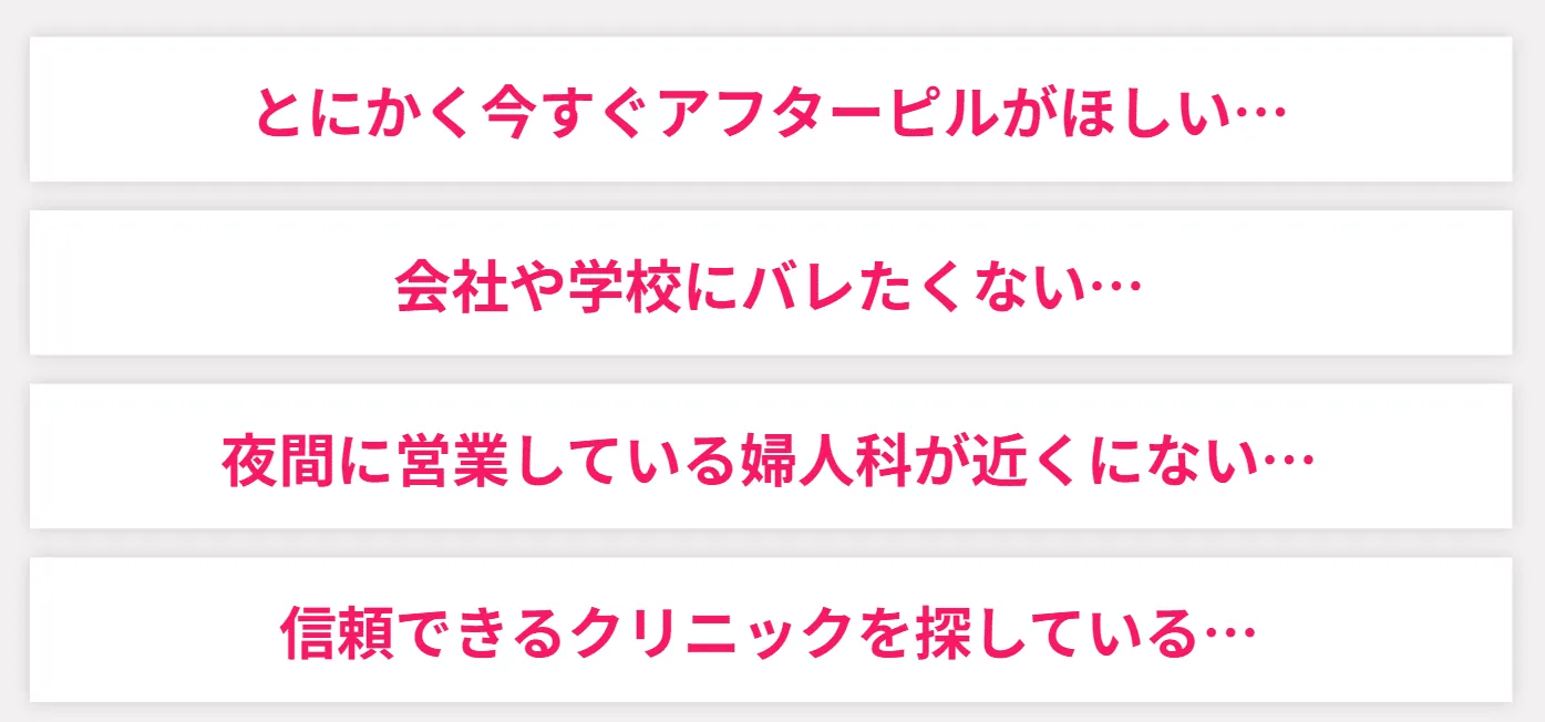 ピル処方 アフターピル宇都宮婦人科クリニックは、宇都宮駅から徒歩約5分のアフターピル(緊急避妊薬)を処方しているクリニックです。 宇都宮駅 徒歩5分 診療内容:オンライン 0.0(口コミ 0件) 時間 月 火 水 木 金 土 日 祝 18:00~24:00 ● ● ● ● ● ● ● ● 年中無休 当日予約可 即日診療 ネット予約
